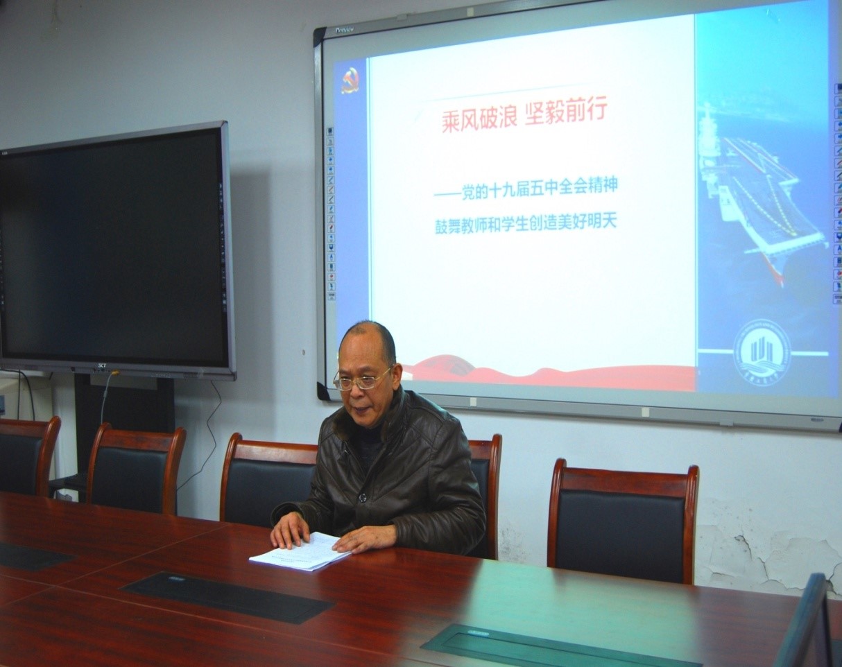 12月15日中午13:00,KY开元集团官网在田家炳313会议室举行了党的十九届五中全会精神主题宣讲会。KY开元集团官网党委书记王建明、党委副书记余新、全体辅导员老师及分团委学生会、楼管会、党员服务站等学生干部参加了会议。