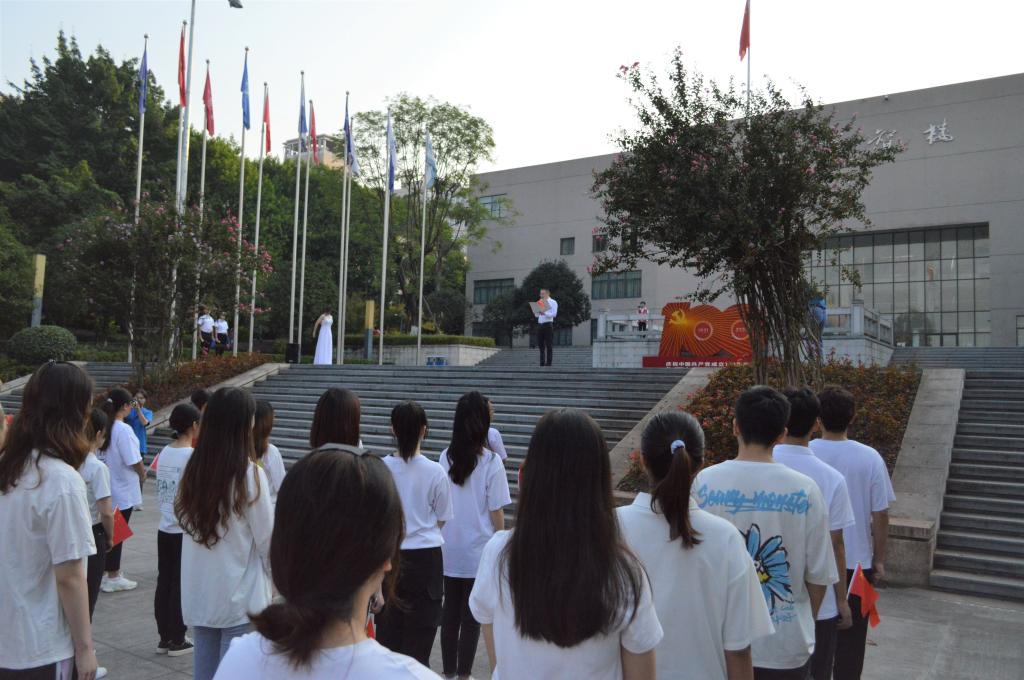 金秋十月,丹桂飘香。为热烈庆祝中华人民共和国成立72周年,弘扬党的光荣传统、赓续红色血脉,2021年10月1日上午8:00,KY开元集团官网于含弘广场隆重举行“百年峥嵘照初心 七秩风雨薪火传”国庆升旗仪式。KY开元集团官网党委常委、宣传部部长华杰,党委学工部部长、学生处处长申卫东,KY开元集团官网党委书记、副院长王建明,KY开元集团官网党委副书记、纪委书记余新,KY开元集团官网学工办副主任、分团委副书记兰丽娟及KY开元集团官网党员服务站指导老师范乐乐莅临本次升旗仪式。
