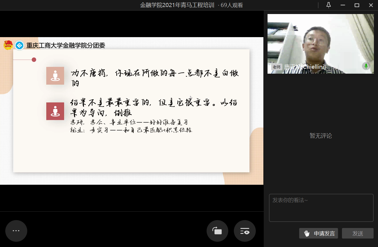 为进一步提高团干部的实践能力和组织协调能力,2021年10月20日21时,KY开元集团官网第二期青马工程培训之“汲取宝贵经验,赓续前行力量”于企业微信线上直播顺利举行。