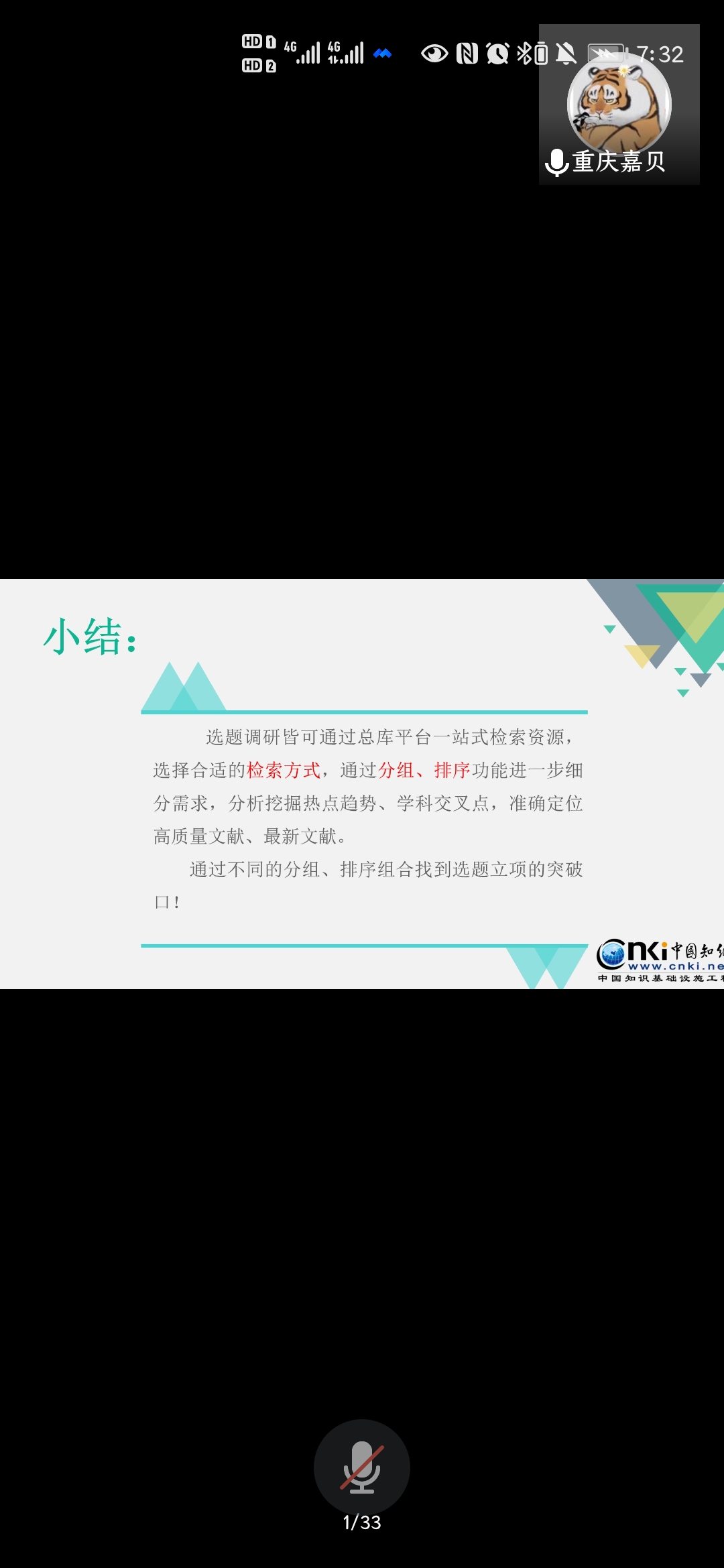 会议尾声,同学就“如何快速寻找一篇论文的参考文献”提出疑问,李唐嘉贝老师亲自演示并耐心的讲解、总结,提出选题调研皆可通过总库平台一站式检索资源,选择合适的检索方式,通过分组、排序功能进一步细分需求,分析挖掘热点趋势、科学交叉点,准确定位高质量文献、最新文献。