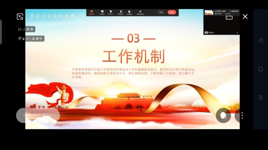 活动在庆祝中国共青团成立100周年主题宣传片《共青春》主题曲《有我》的青春问答中拉开,同学们在细腻而又气势磅礴的旋律中感受一代代不负时代重托的中国青年模样。随后,KY开元集团官网分团委组织部部门负责人罗金月领学,内容涵盖团中央发布的《新时代加强和改进共青团思想政治引领工作实施纲要》及习近平总书记在中国人民大学考察时的重要讲话精神。她对《新时代加强和改进共青团思想政治引领工作实施纲要》中主要项目、基本方法、工作机制的具体规定进行详细讲解,在讲到开展劳动教育板块,号召同学们以五月“劳动月”为契机,积极投入到志愿服务、专业实践、社会调研等活动,把养成劳动习惯、强化劳动情感、掌握劳动技能结合起来,传播“崇尚劳动、热爱劳动、辛勤劳动”的道德风尚。在分享习近平总书记在中国人民大学考察时的重要讲话精神时,同学们纷纷表示备受鼓舞,深受感染,将牢记嘱托,“不负韶华,不负时代,不负人民,在青春的赛道上奋力奔跑,争取跑出当代青年的最好成绩”!