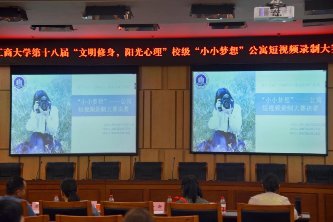 随后,比赛正式拉开帷幕。一路过关斩将,杀入决赛的十组选手为我们带来了精彩纷呈的视听盛宴。选手们在作品播放完毕后,使用ppt讲解形式向在场评委老师、嘉宾和观众传达了他们的拍摄理念和主题思想。作品特色鲜明,内涵丰富,映射出当代大学生心理情感世界的新历程,突出“小小梦想”的主题又不失趣味,达到了良好的心理教育效果。
