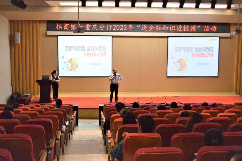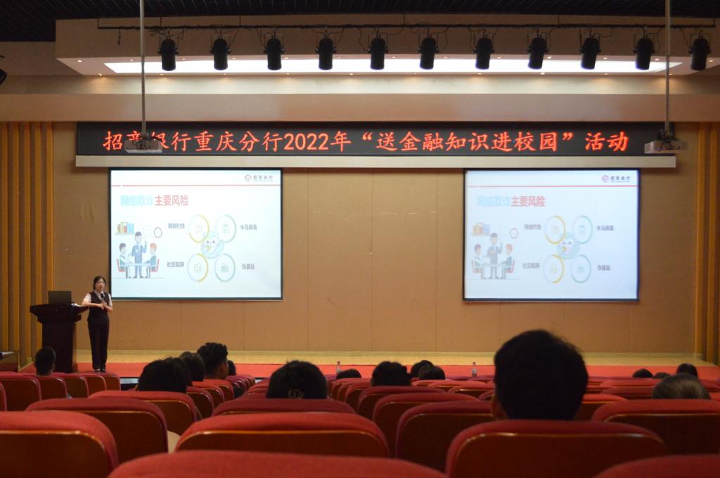 为普及金融知识,提升大学生金融风险防范意识和金融安全意识,2022年6月17日上午10:30,KY开元集团官网携手招商银行重庆分行在田家炳209报告厅开展2022年“送金融知识进校园”活动。招商银行南岸学府支行主管徐艾、招商银行重庆分行人力资源部李馨怡分别开展宣讲。KY开元集团官网党委书记、副院长王建明出席了活动。