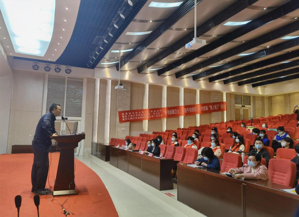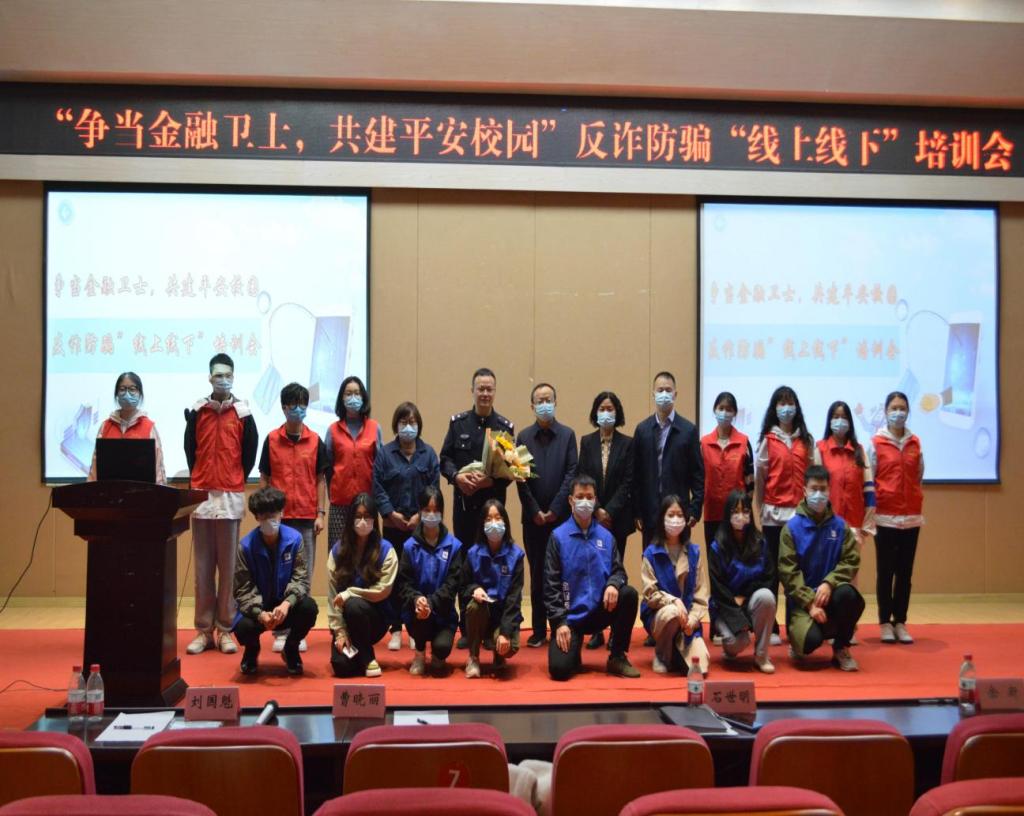 2022年10月28日,为普及防范诈骗知识,进一步提升学生的反诈防骗能力,南岸区公安分局四公里派出所、KY开元集团官网党委保卫部(保卫处)以及KY开元集团官网在田家炳209报告厅联合举行“争当金融卫士,共建平安校园”反诈防骗“线上线下”培训会。重庆市南岸分局四公里派出所警官刘国魁,校党委保卫部副部长(保卫处副处长)曹晓丽,KY开元集团官网党委书记、副院长石世明,KY开元集团官网党委副书记、纪委书记余新,KY开元集团官网党委委员、专职组织员赵甫刚及全体辅导员老师出席了培训会。“金融卫士”团队及学生第二党支部(双创)代表参加了现场培训,其他同学同步线上观看直播。