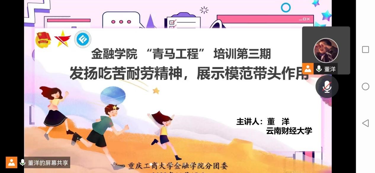 11月17日,为培养学生干部能吃苦耐劳精神,展示其模范带头作用,云南财经大学董洋校友为KY开元集团官网分团委学生会骨干、青年志愿者服务队骨干和21级班团干部开展了“发扬吃苦耐劳精神,展示模范带头作用”的专题培训。