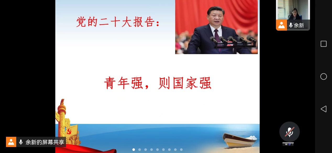 为深入学习宣传贯彻党的二十大精神,持续推动党的二十大精神走心走实,11月25日中午12:40,KY开元集团官网党委书记、纪委书记余新在线上进行党的二十大精神宣讲。KY开元集团官网全体辅导员老师和各学生组织骨干、班团干部参加了宣讲会。