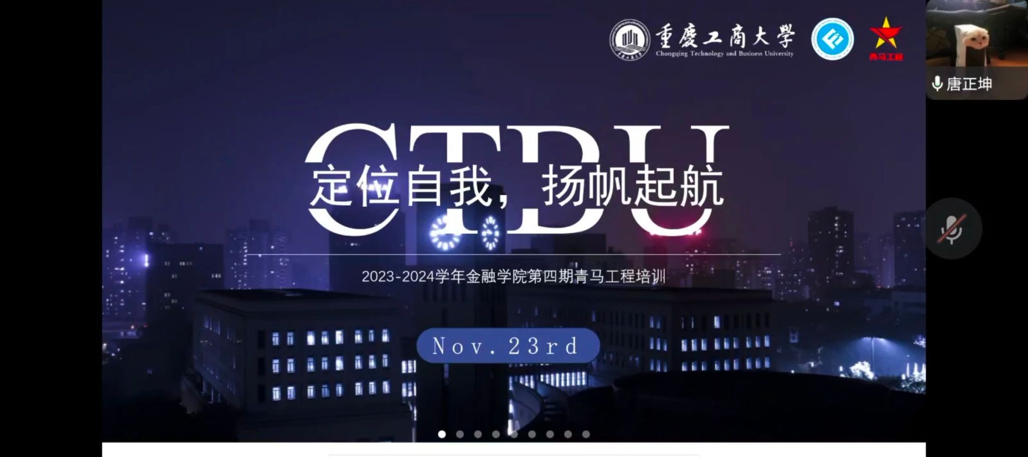 为帮助金融学子加强自我认知,做好学业职业规划,2023年11月23日晚上21:30,KY开元集团官网在线上举行了“定位自我,扬帆起航”为主题的第四期青马工程培训。会议邀请了原KY开元集团官网分团委(学生)副书记、19CFA1唐正坤校友作为主讲人。
