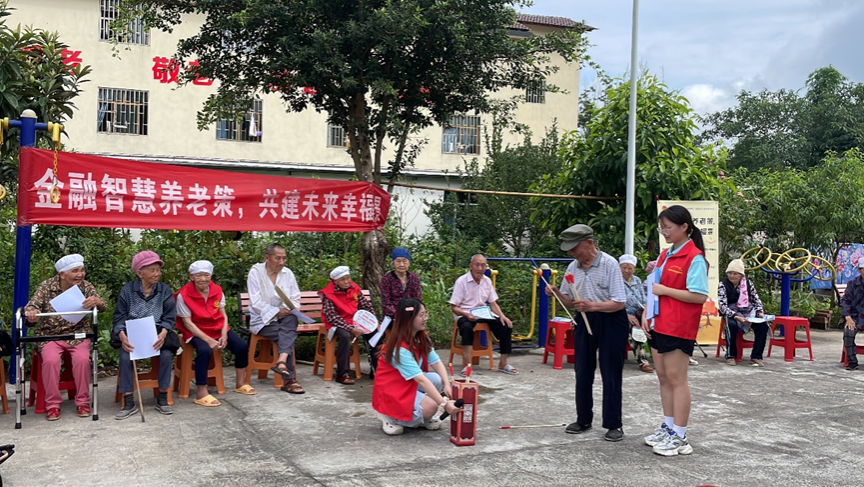 为普及养老保险相关知识和种类,用金融智慧惠及民生,提升老年人的幸福感,实践团在兴合村养老院开展“金融智慧养老策,共建未来幸福景”宣讲活动。