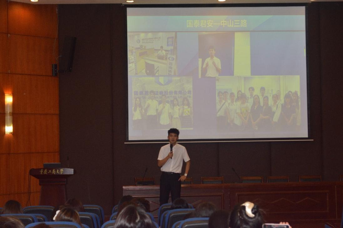 程宇昊学长在分享中指出,学习是一个自我提升的过程,大一新生需要找到学习的目标与归宿。同时,他也分享了自己的成长故事,来告诫同学们要学会协调好学习与工作时间。最后他寄语新生,希望同学们能够时刻保持心中有善,心中有爱,眼中有光,在最美好的重工商大里学有所成,成长为更好的自己。