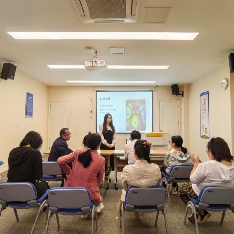 在智能机器人体验区,心理中心张璐老师带领大家深度体验了最新引进的AI心理辅助机器人"小智"。这款基于自然语言处理与情感计算技术打造的智能设备,通过5分钟情景对话即可完成心理画像初筛,其内置的大学生常见心理问题数据库包含多种应对方案。