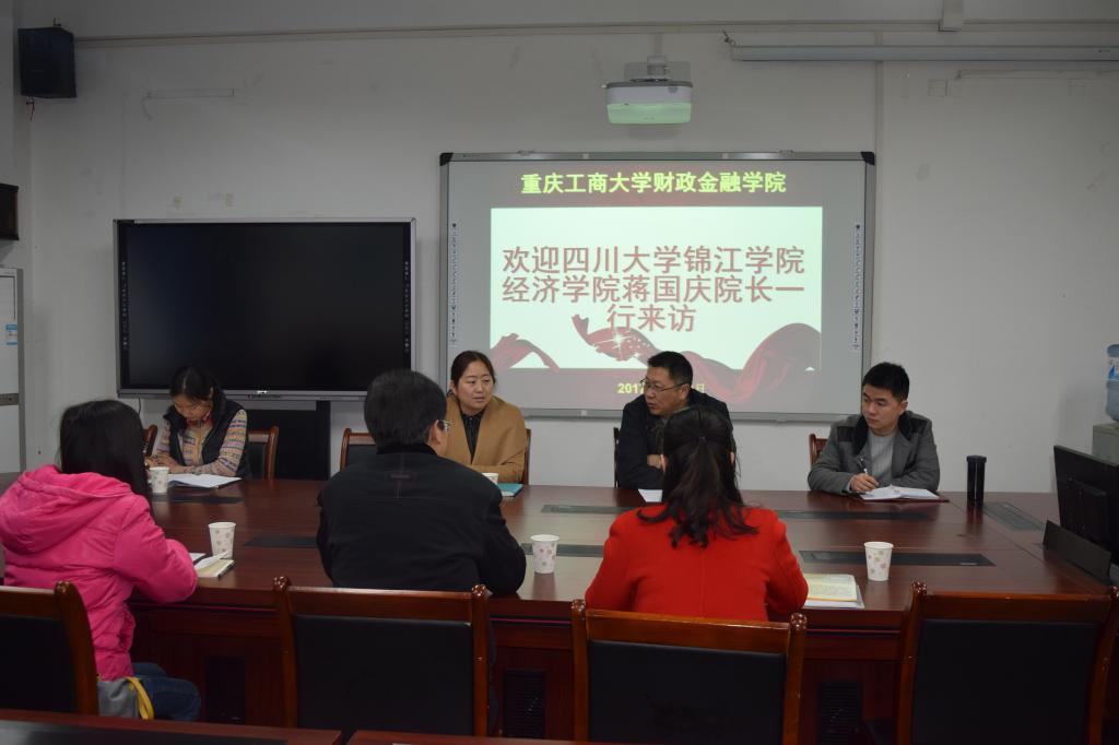 2017年3月23日上午9:00点,四川大学锦江学院经济学院院长蔡国庆教授等三人一行到KY官网交流访问,KY官网副院长王兰教授、投资系教师毛跃一教授等人进行了亲切接待,双方共同探讨了CFA办学经验等事宜。