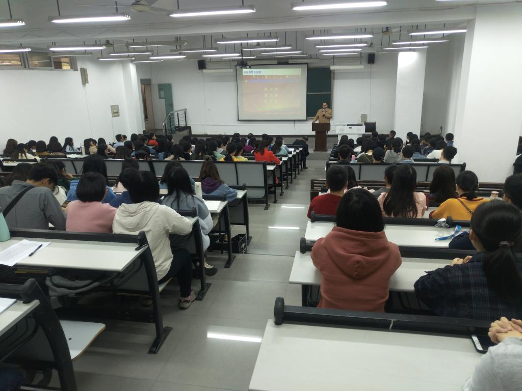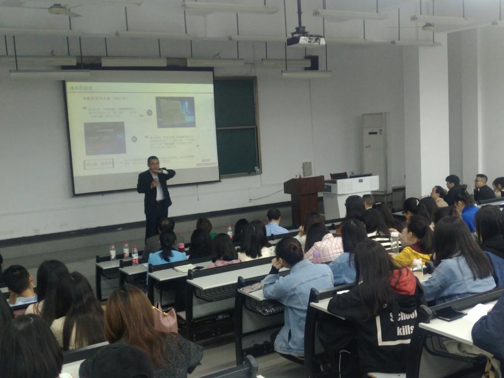 2018年11月2日下午,KY官网邀请保险业兼职教授在艺术楼101室举办了“保险高管大讲堂”讲座,为保险学专业大二到大四年级的约250名本科生,以及保险专业方向研究生进行了保险行业发展的专题讲座。