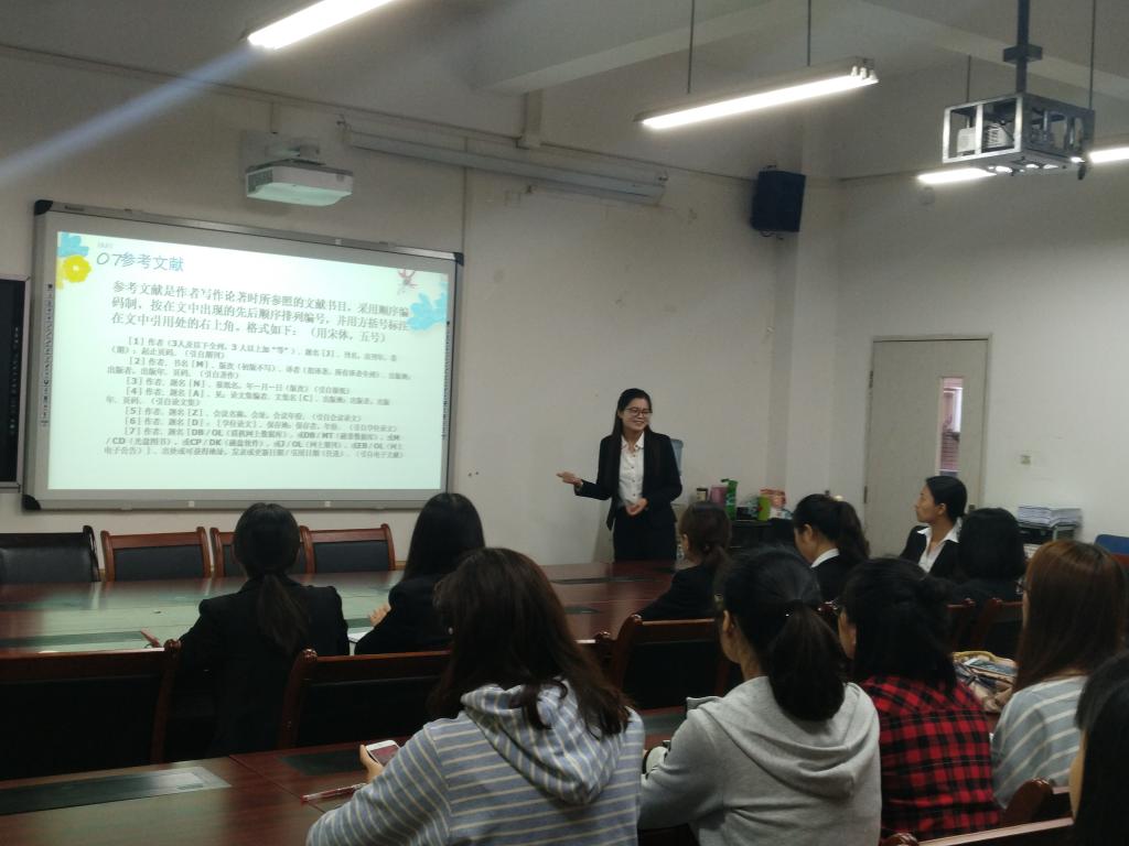 首先,课题组长陶小兰详细的介绍了百校百题课题比赛的赛事,并向大家汇报了本次参加百校百题课题大赛的参赛流程和取得的成果,通过几个月的讨论与学习,课题组最终完成了一篇6万多字的论文和一篇1万多字的案例分析报告。其次,由参加本次百校百题课题比赛的小组成员分别就论文撰写过程中遇到的一些问题和解决方法、技巧为大家做出了分享和总结。马雪瑶分享了文献综述的撰写技巧、文献的查找途径等;曹东维分享了论文撰写规范,以及论文排版的一些小技巧;王廷具体讲到如何选择正确合理的模型与如何构建模型,数据处理与分析等。