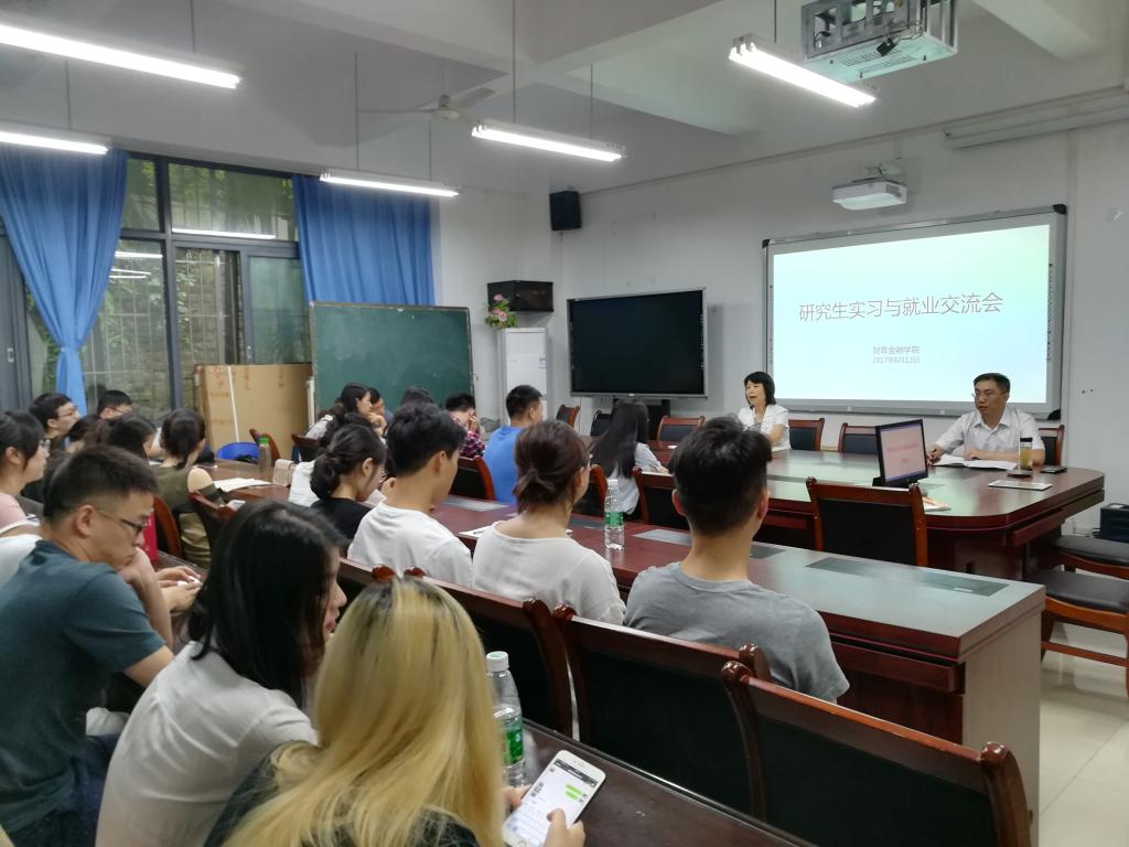 为帮助同学们正确地认识自我、找准未来的方向和目标、为以后的就业和职业竞争做好准备,财政KY开元集团官网于2017年6月12日下午在田家炳书院会议室专门举办了“研究生实习与就业交流会”,并邀请财政KY开元集团官网党委书记杨萍教授亲自为同学们指导和交流,参加本次交流会的有15级金融学和财政学专业、16级金融硕士的研究生。本次交流会由财政KY开元集团官网副院长曾胜教授主持。