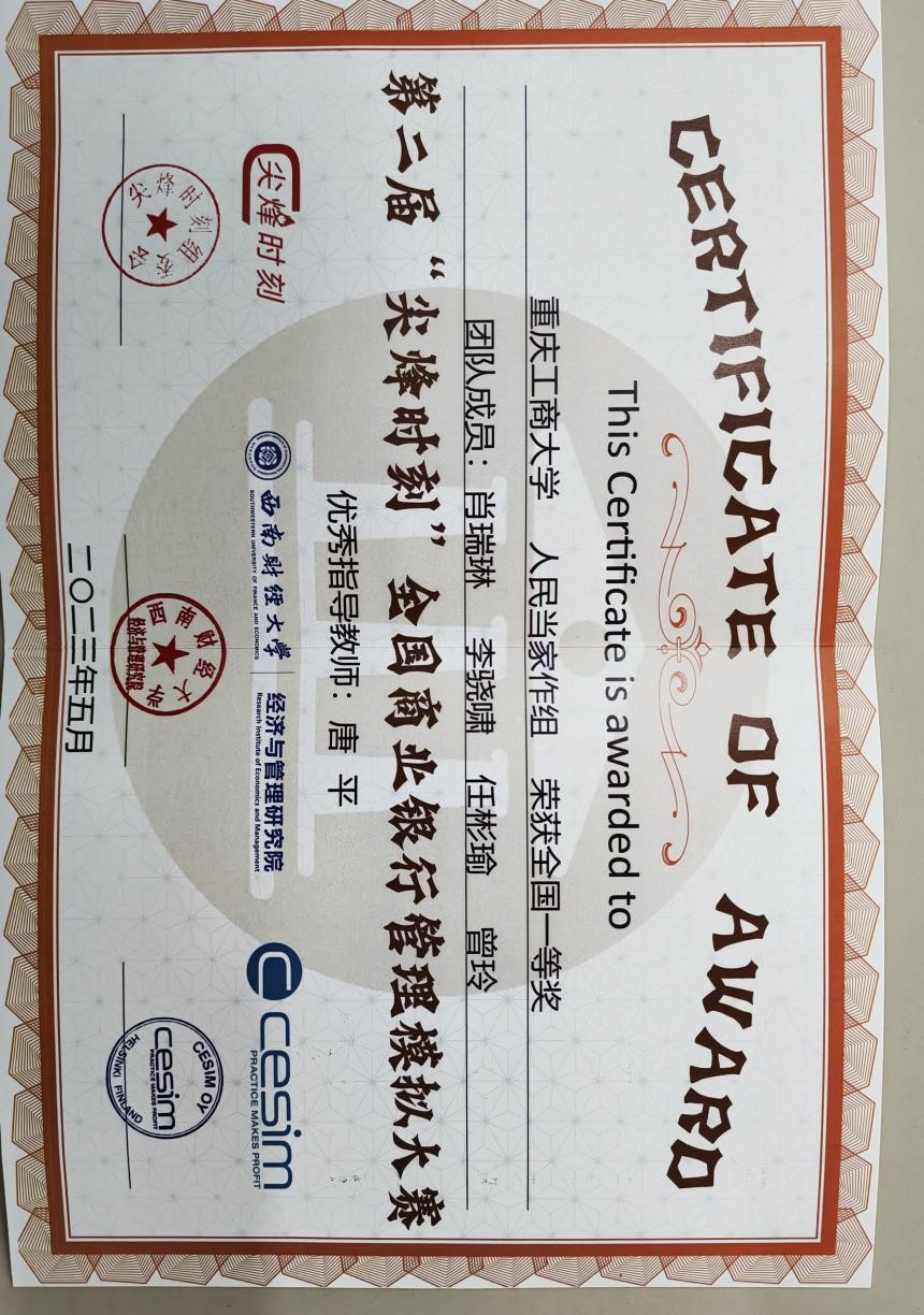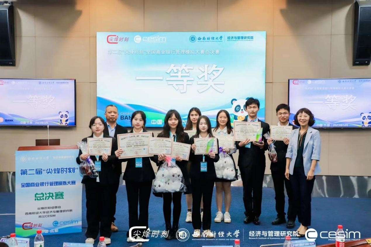 2023年5月19日-2023年5月21日,第二届“尖烽时刻”全国商业银行管理模拟大赛总决赛在西南财经大学举办。本次比赛参与面广,有近40所院校近120支团队参加初赛,经过激烈角逐,来自17所院校的20支团队进入总决赛。KY官网20投资一班肖瑞琳、20金融一班李骁啸、21金融工程一班任彬瑜、20CFA1班曾玲在唐平老师的指导下入围总决赛并荣获全国一等奖。