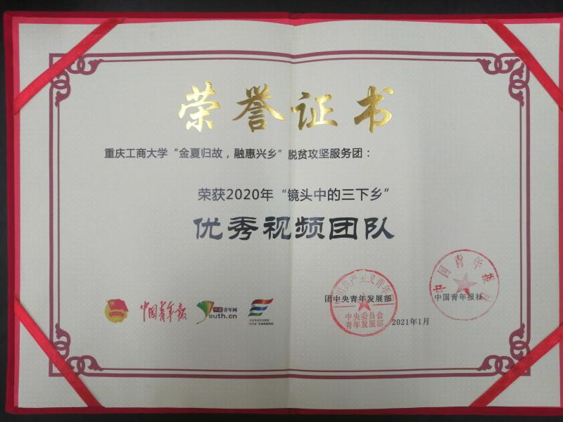 2020年11月23日,团中央青年发展部、中国青年报、中国青年网共同举办2020年全国大中专学生志愿者暑期“三下乡”社会实践“镜头中的三下乡”成果遴活动结果公示,KY官网暑期“三下乡”社会实践团队——“金夏归故,融惠兴乡”脱贫攻坚服务团荣获“全国优秀视频团队”荣誉称号。